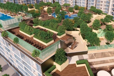 The Crest Grande master plan provides for the creation of a luxurious infrastructure inside the building for a comfortable stay and a life of luxury for the future owners and guests of the complex. A must-have attribute of luxury housing in Dubai is an outdoor swimming pool with recreational areas. The exterior of the building will be created in a modern eco-style. The facades will be decorated with wooden elements and green plants on the outdoor terraces. The apartment will have an open kitchen, a combined living and dining area, a bedroom with a separate bathroom, and a guest bathroom. Panoramic glazing will allow you to enjoy magnificent views of the lagoon and the promenade.