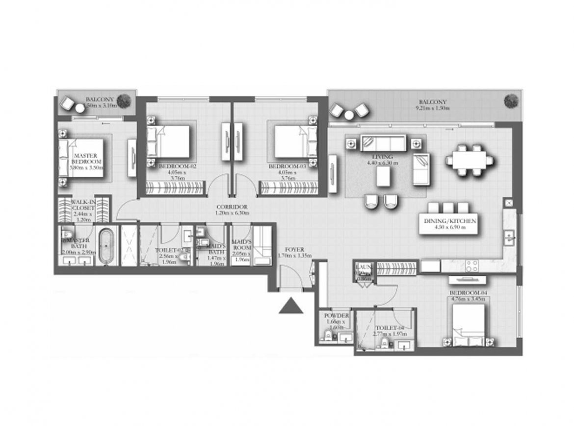 In the new complex, apartments will be available with one to four bedrooms, as well as a luxurious five-bedroom penthouse with a private terrace and swimming pool. All apartments will have exquisite interiors and finish with high-quality materials. Buyers can choose from nine different layout options. Apartments have one or two spacious balconies, open or semi-open kitchens, built-in closets, and/or walk-in closets in the bedrooms.